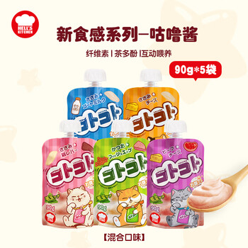 地狱厨房(Hell's Kitchen)新食感咕噜酱营养猫条猫湿粮软罐头猫咪零食肉酱 混合装90g*5袋