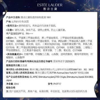 雅诗兰黛轻透持妆粉底液 1W1