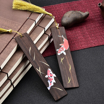 米兹MIEZ 黑檀木质书签双支装礼盒中国风特色礼品教师节礼物送老师同学长辈公司年会礼品 彩绘锦鲤生日礼物