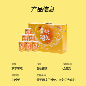 京东京造鲜来多黄桃罐头425g*6罐即食水果罐头旅行户外零食团购年货送礼盒