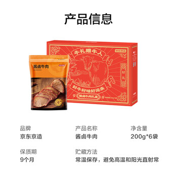 京东京造牛肉礼盒五香酱牛肉熟食1200g共6包年货礼盒团购 清真