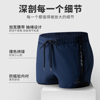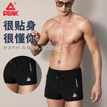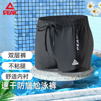 匹克泳裤男泳衣男防尴尬速干宽松平角沙滩裤双层温泉海边度假泳裤黑 L
