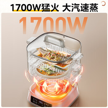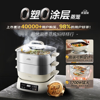 美的(Midea)电蒸锅电煮锅电火锅多功能家用电炒锅蒸包子锅蒸全能三层16.6L大容量智能多用途锅ZGC282802