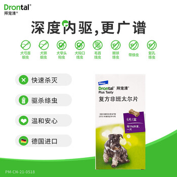 拜宠清宠物驱虫药口服内驱蛔虫绦虫线虫钩虫2kg以上犬用6粒 德国进口