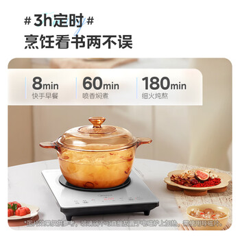 美的(Midea)铂钻家用电磁炉 电陶炉 新型电磁灶2200W火锅炉大功率炒菜烧水一体面板超薄 MC-E22B20