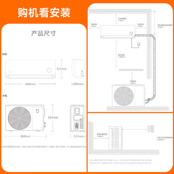 内机机身尺寸 高311mm;深200mm;宽840mm