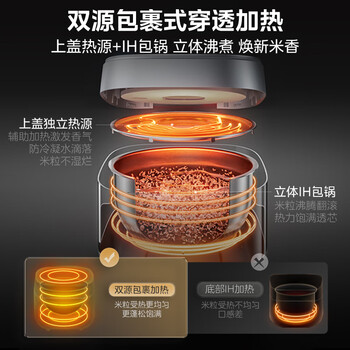 美的(Midea)电饭煲风动稻香Pro电饭锅4L立体IH加热一键双层快速煮智能电饭煲MB-HS433(3-4人)