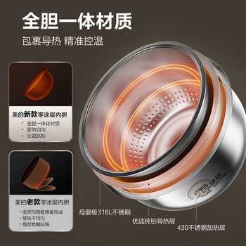 美的(Midea)0涂层电饭煲IH加热无涂层4L大容量316L不锈钢蜂窝内胆家用多功能智能3-4人4-5人电饭锅MB-HC459S