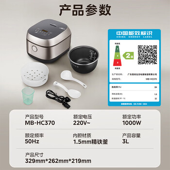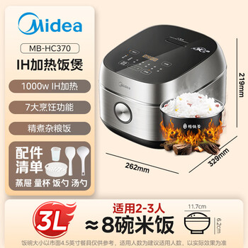 美的(Midea)电饭煲3L IH加热 加厚精铁釜内胆杂粮饭2-3人多功能家用智能预约电饭锅MB-HC370