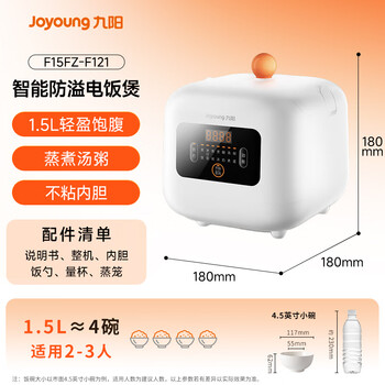 九阳(Joyoung)小型饭煲1.5升迷你智能微压电饭煲简单操控面板黑晶不粘内胆多功能蒸煮煲汤 F121(推荐1-2人)