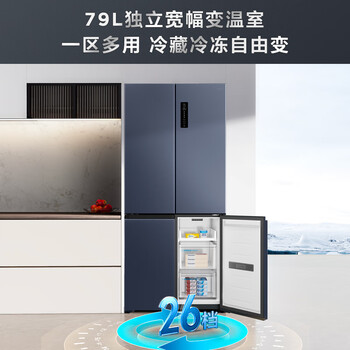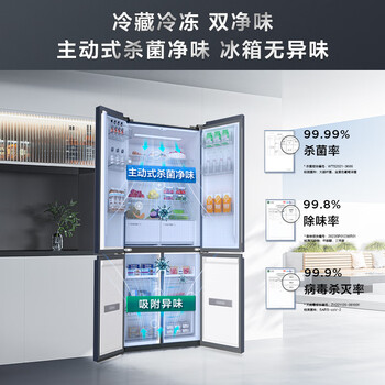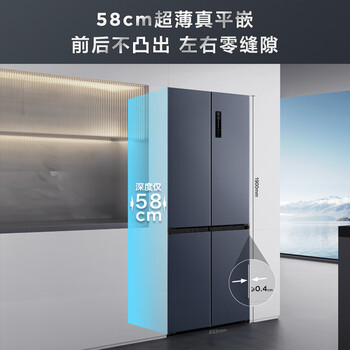 TCL大无界456L十字门冰箱58cm超薄零嵌入式底部散热双净味电冰箱风冷一级能效R456T9-UQ