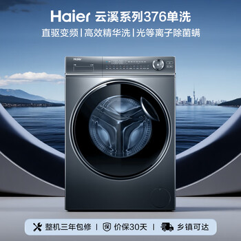 海尔云溪2.0 滚筒洗衣机全自动 10公斤大容量 直驱超薄 光等离子除菌 京东自营 376单洗