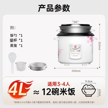 三角牌(Triangle)电饭煲家用老式电饭锅4L大容量煮饭锅不粘内胆米饭锅带蒸笼3-4人用 TG-Z40X18J
