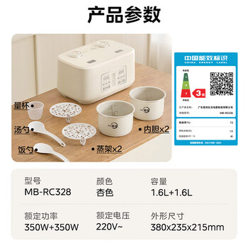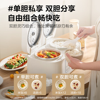 美的(Midea)3.2L双胆双控电饭煲白玉晶釜内胆2-3人香弹饭煲仔饭多功能家用智能电饭锅MB-RC328