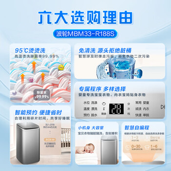 海尔(Haier)婴儿洗衣机小型波轮全自动3.3KG 儿童洗衣机 内衣裤洗衣机 95℃烫烫洗 家电焕新补贴MBM33-R188S