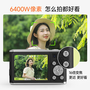 彩族(CAIZU) 前后双摄镜头6400W像素学生党数码相机 自拍vlog校园小卡片机取代ccd可上传手机 128G 开学好礼物