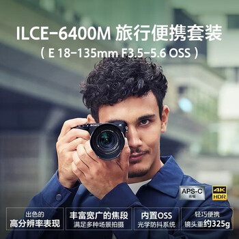 索尼(SONY)Alpha 6400M旅行便携套装(SEL18135镜头) 黑色 APS-C画幅 ILCE-6400M/A6400M/α6400m