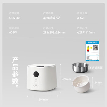 olayks立时 电饭煲小型3升2-6人内胆24小时智能预约多功能家用电饭锅带蒸笼