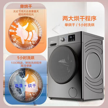 威力(WEILI)滚筒洗衣机10KG洗烘一体 超薄变频一级巴氏除菌洗送装一体XQG100-1016DPHX钛金灰