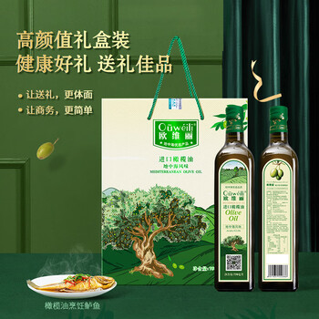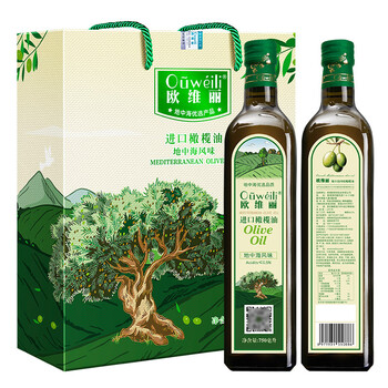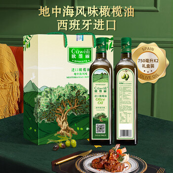 欧维丽(Ouweili)保真橄榄油750ml*2瓶礼盒 西班牙进口原油纯正橄榄油 团购福利