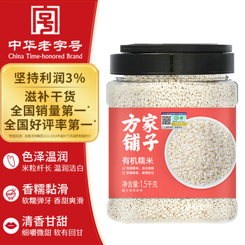 方家铺子中华老字号 有机糯米3斤罐 端午粽子米 东北圆粒 江米 杂粮米粗粮
