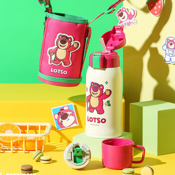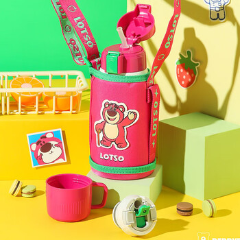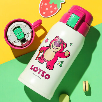 杯具熊(BEDDYBEAR)儿童保温杯带吸管双盖两用儿童水杯316不锈钢学生杯子600ml草莓熊