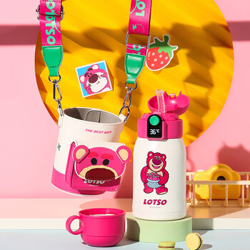 杯具熊(BEDDYBEAR)温显儿童保温杯带吸管儿童水杯大容量学生杯子480ml幸运草莓熊