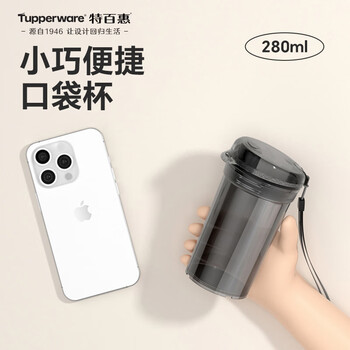 特百惠(Tupperware)晶彩mini塑料杯280ML 男女学生夏季水杯子儿童双饮口便携 酷炫黑