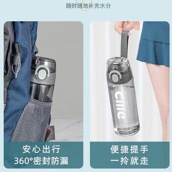 希乐(cille)塑料水杯tritan男女学生大容量便携户外运动健身随手杯子灰600ml