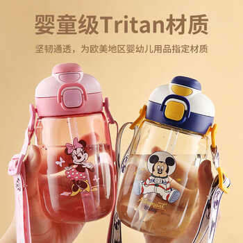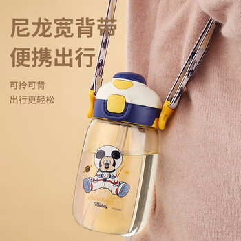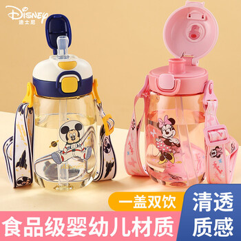 迪士尼儿童水杯带吸管夏季双饮塑料壶幼儿园男女小学生便携直饮喝水杯子