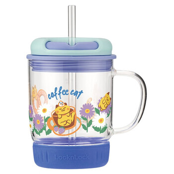 乐扣乐扣(LOCK&LOCK)宝宝牛奶杯 学生可微波加热儿童带刻度玻璃喝奶吸管水杯450ml蓝色