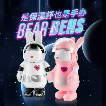 BEARBENS熊本士保温杯儿童水杯316不锈钢学生水壶女士生日礼物月球兔粉