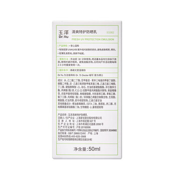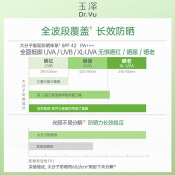 玉泽(Dr.Yu)清爽特护防晒乳SPF42 PA+++大分子防晒 敏感肌温和免卸50ml