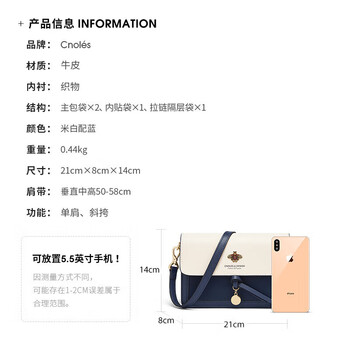 蔻一(Cnoles)斜挎包包女士牛皮单肩高端通勤小方包生日礼物送女友老婆