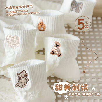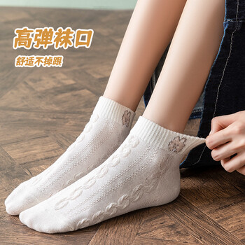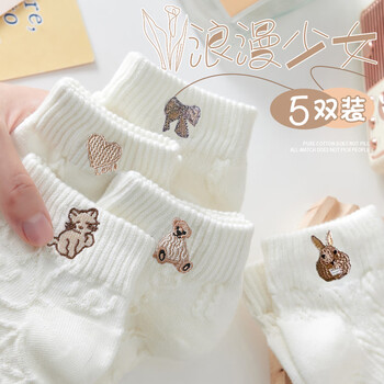 莫代尔5双袜子女夏季薄款棉质短袜透气浮雕少女运动船袜夏天仙女士袜子