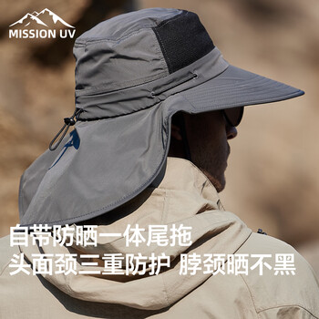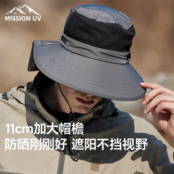 MISSION UV防晒帽男遮阳帽钓鱼渔夫帽登山帽子夏季户外防紫外线宽帽檐太阳帽