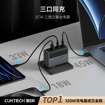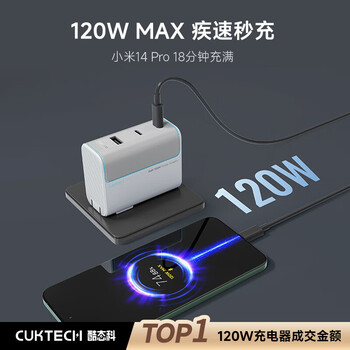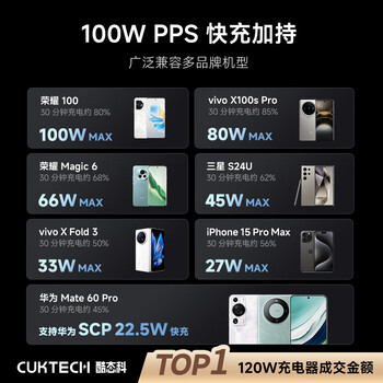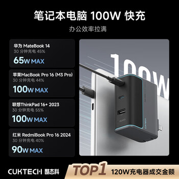 CUKTECH酷态科10号氮化镓充电器套装120W三口快充头兼容PPS100W适用苹果17小米华为荣耀手机平板笔记本