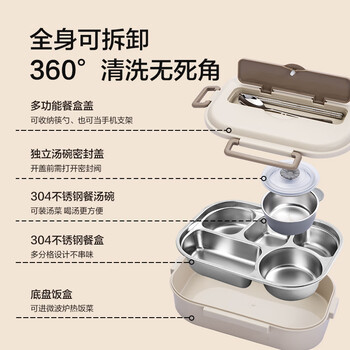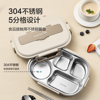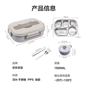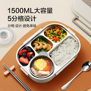 京东京造 饭盒 小学生304不锈钢餐盒上班族微波炉保温 5分格1.5L 配餐具