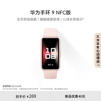 华为(HUAWEI)手环9 NFC版 智能手环 拂晓粉支持NFC功能电子门禁快捷支付公交地铁送男友送女友
