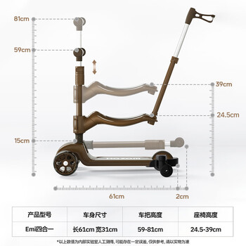 KAZAM卡赞姆儿童滑板车3一6一12岁幼儿可坐四三合一周岁宝宝车四合一棕