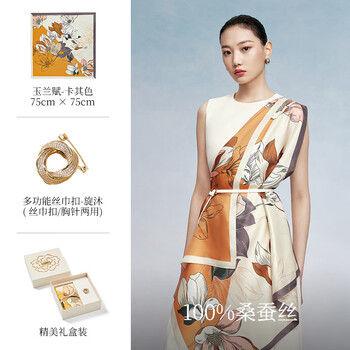万事利真丝丝巾桑蚕丝75cm中方巾丝巾扣礼盒送长辈妈妈生日礼物玉兰赋