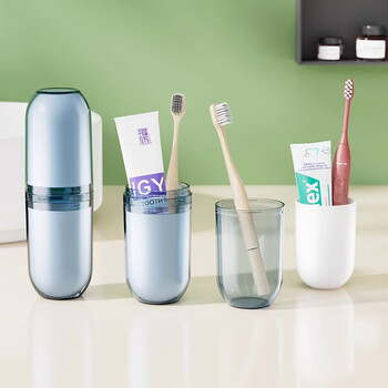 欣沁洗漱杯多功能四合一刷牙杯旅游牙膏漱口杯套装便携4个杯子蓝色