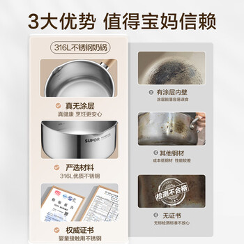 苏泊尔(SUPOR)婴童级316L不锈钢奶锅 炖煮泡面火锅多功能 明火磁炉通用加厚18cm