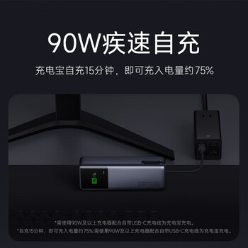 小米(MI)【3C认证】自带线充电宝10000 165W大功率双口超快充适用于小米/红米/苹果/华为可上飞机/火车