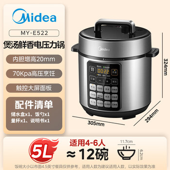 美的(Midea)深汤智能5L全自动电压力锅提鲜祛腥电锅开盖火锅高压易清洁双胆高压锅饭煲E522(4-6人)京东