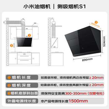 吸油烟机*1、挂板*1、出风罩*1、铝箔纸*1、出风罩胶垫*1、出风管180mm*1、使用说明书*1、安装螺丝包*1、绿色胶粒*2、防脱板*2、油杯*1