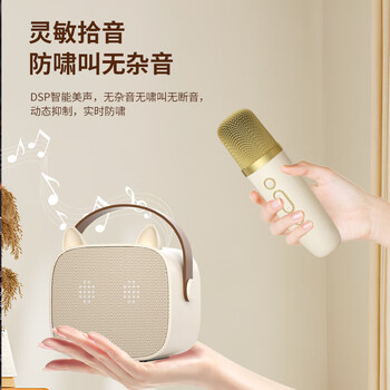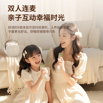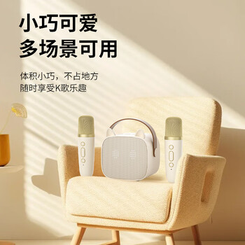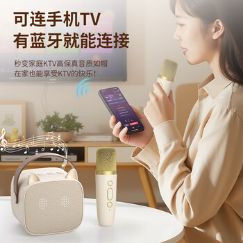塔努啦(TANALAZ)话筒音响一体麦克风无线蓝牙全民唱k歌儿童卡拉OK户外家庭ktv套装奶油白【双话筒】