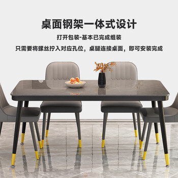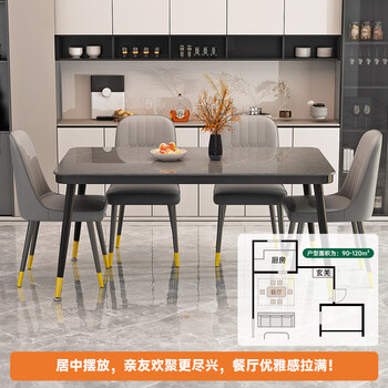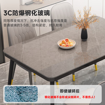 凡社餐桌家用餐桌椅组合 4人6人桌子饭桌 岩板纹玻璃小户型餐桌椅套装