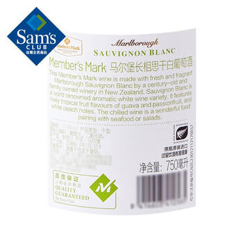 Member's Mark 新西兰进口 马尔堡长相思干白葡萄酒 750mL 750mL
