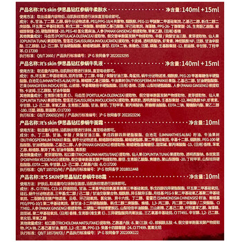 套盒*1内含(红参水140ml+红参乳液140ml+水乳小样各15ml+红参洁面30ml+红参BB霜10ml+红参面霜10ml)